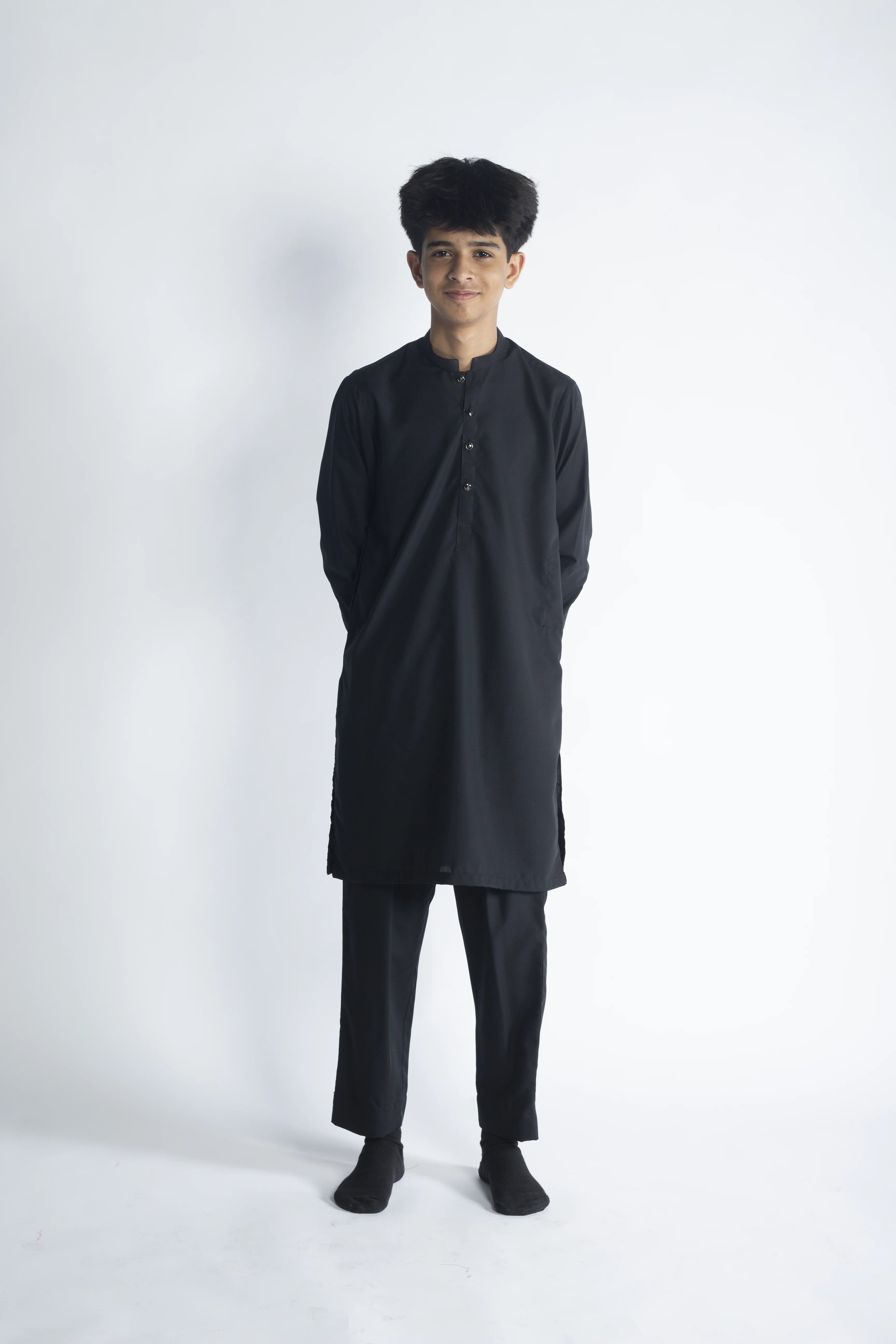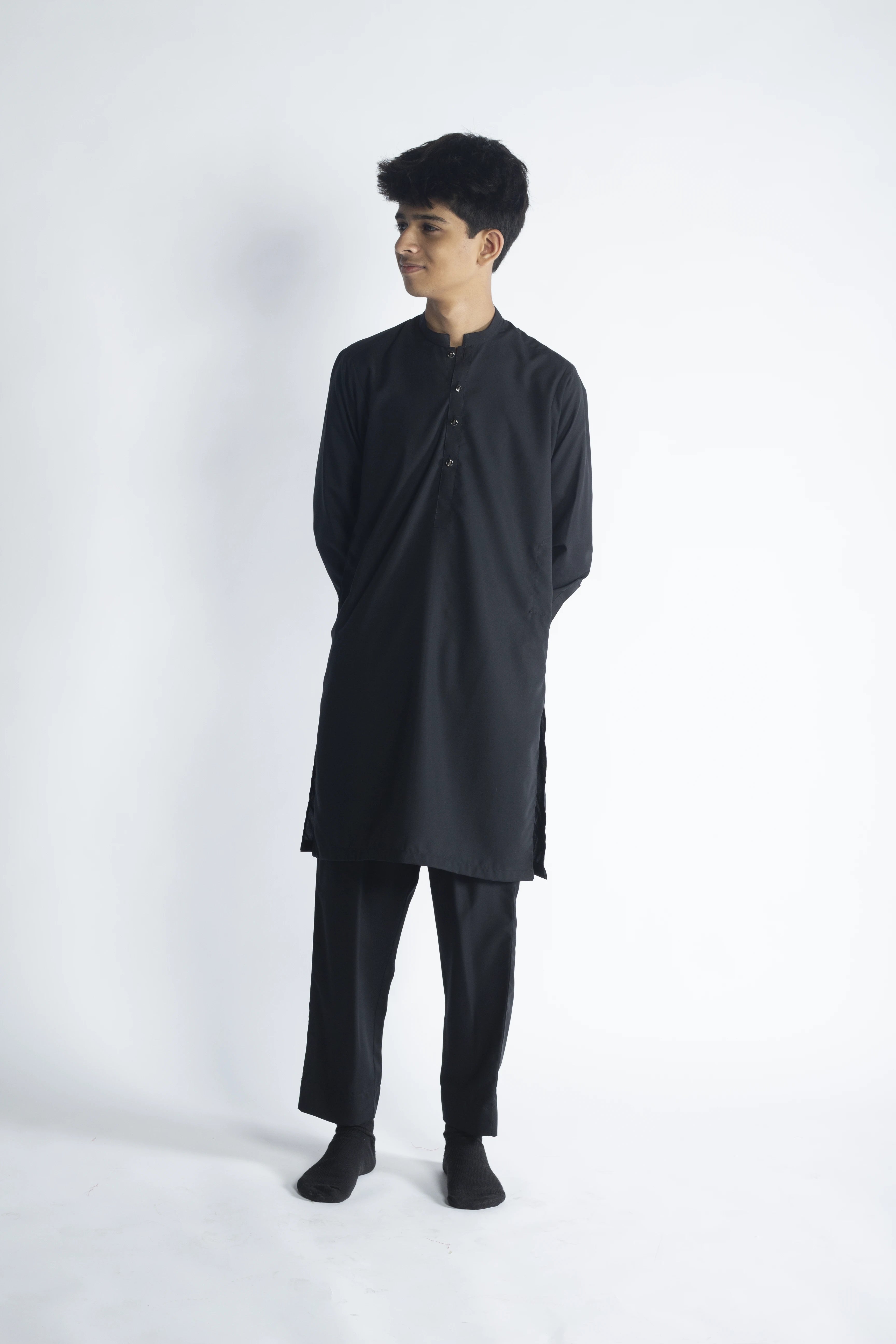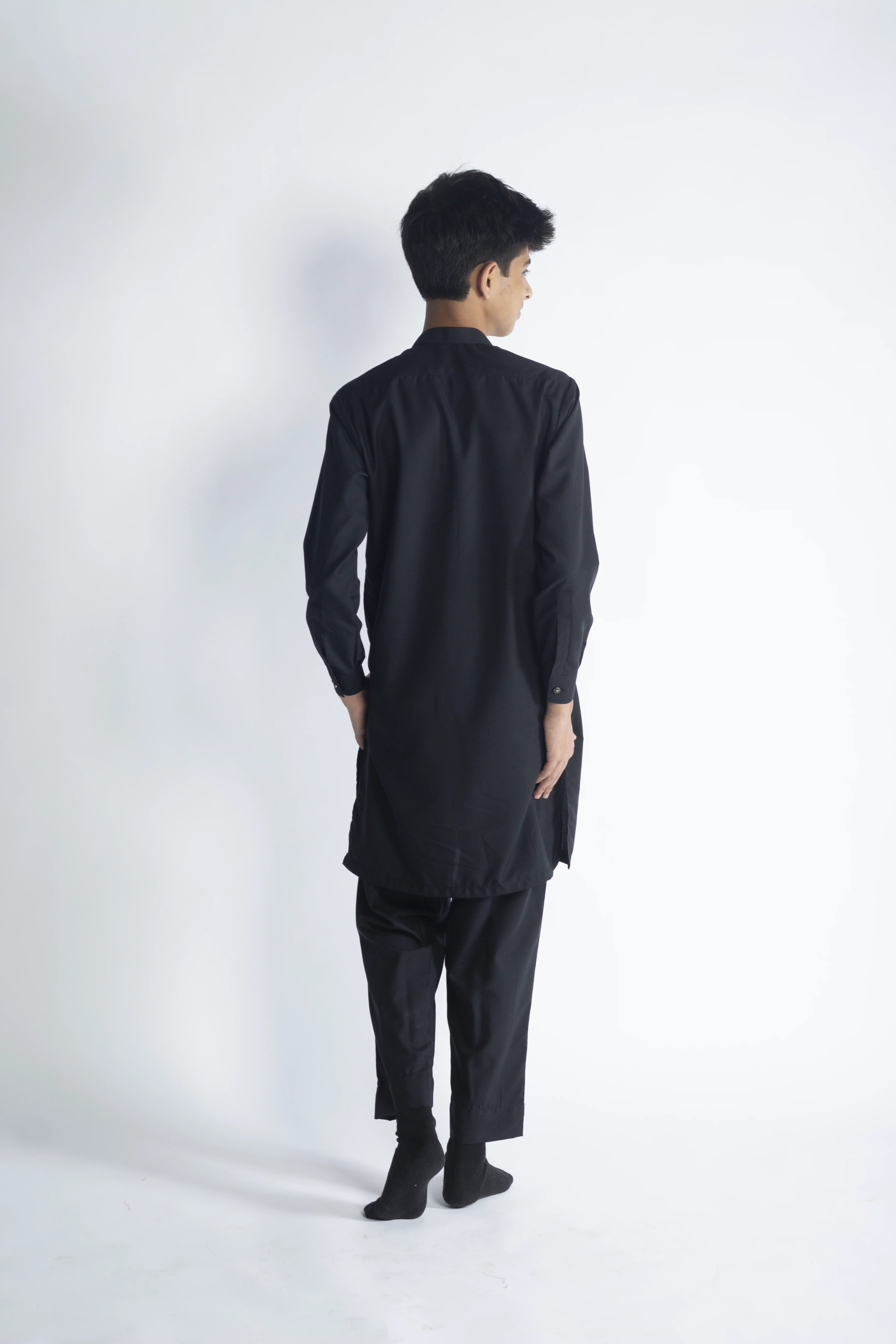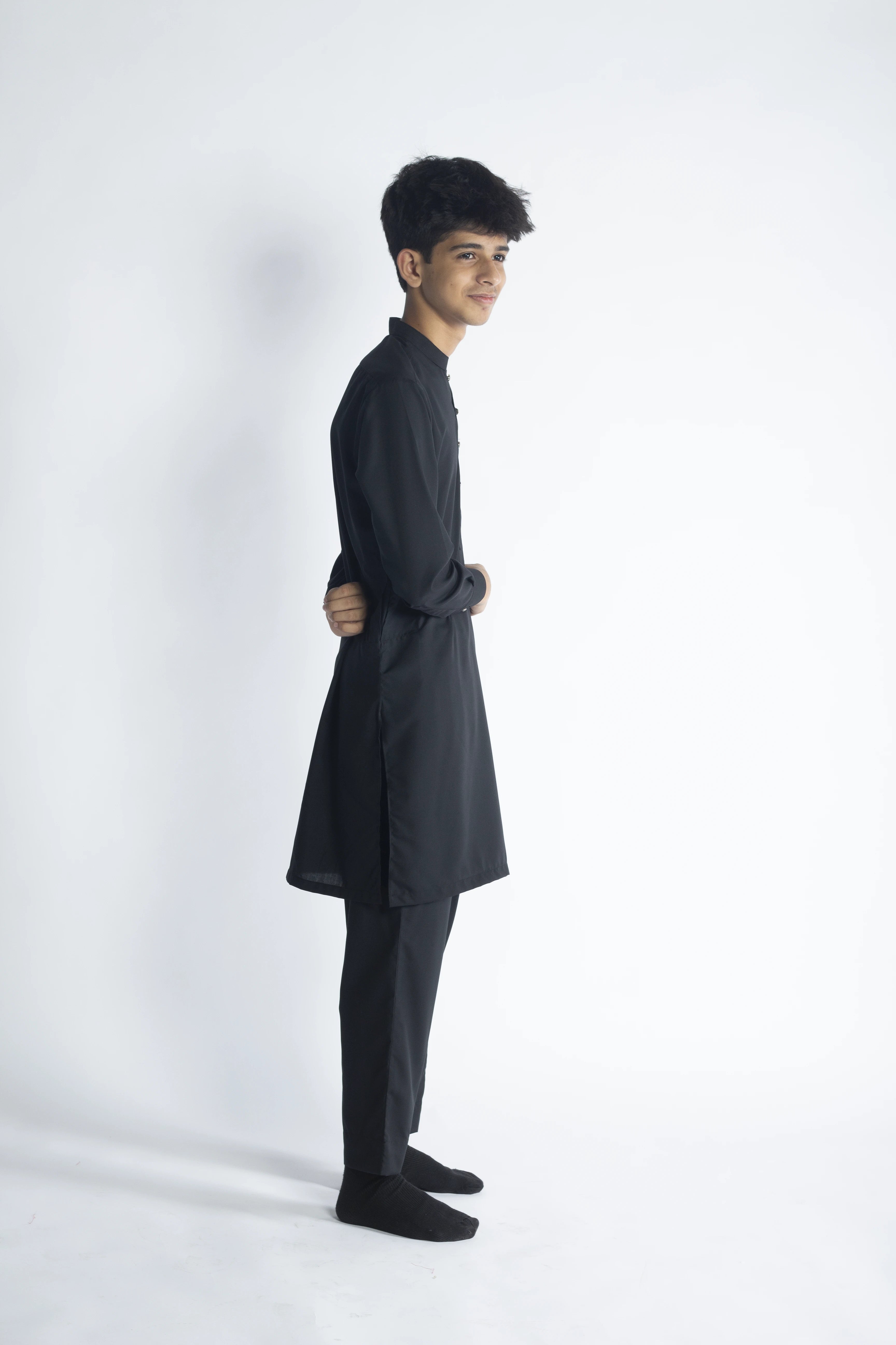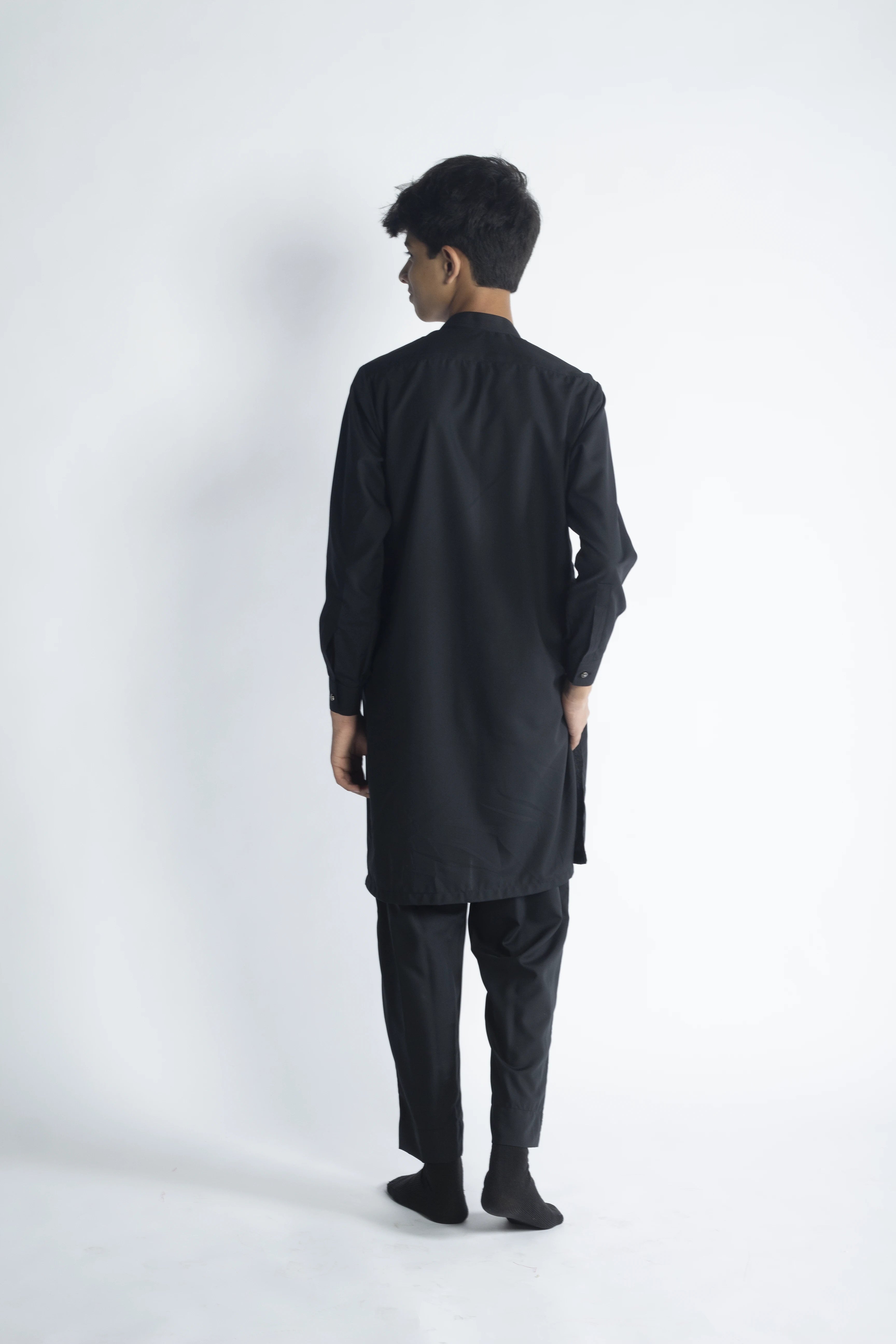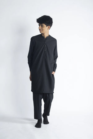 Step into effortless elegance with our wash and wear black kurta trouser set.The kurta, crafted from premium wash and wear fabric, features a classic silhouette in a sophisticated black color, ideal for any occasion. Paired with matching trousers, this set ensures you look polished and feel comfortable all day long.