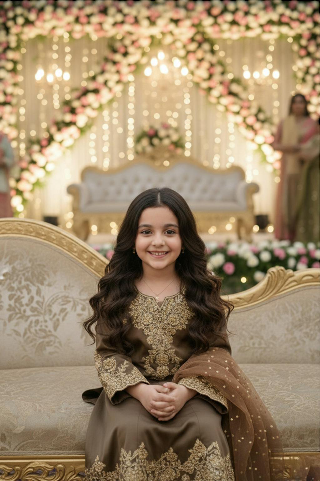 Meral stands as the epitome of regal craftsmanship — a smoky brown masterpiece, intricately handcrafted with golden adda artistry and floral motifs. Designed for celebrations where grace meets grandeur.