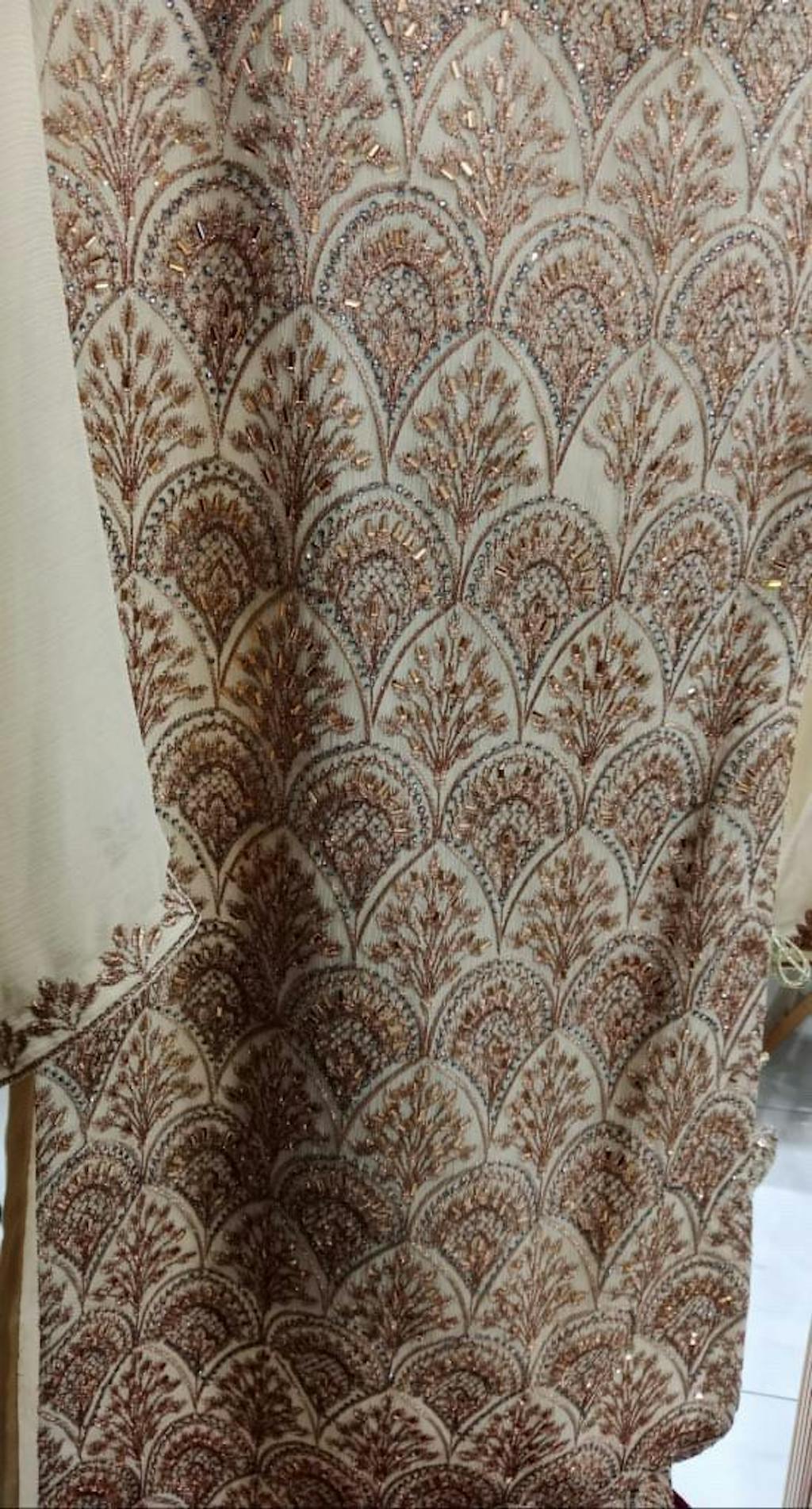Shirt: Beige Chiffon with Champagne Cut Daana Embroidery