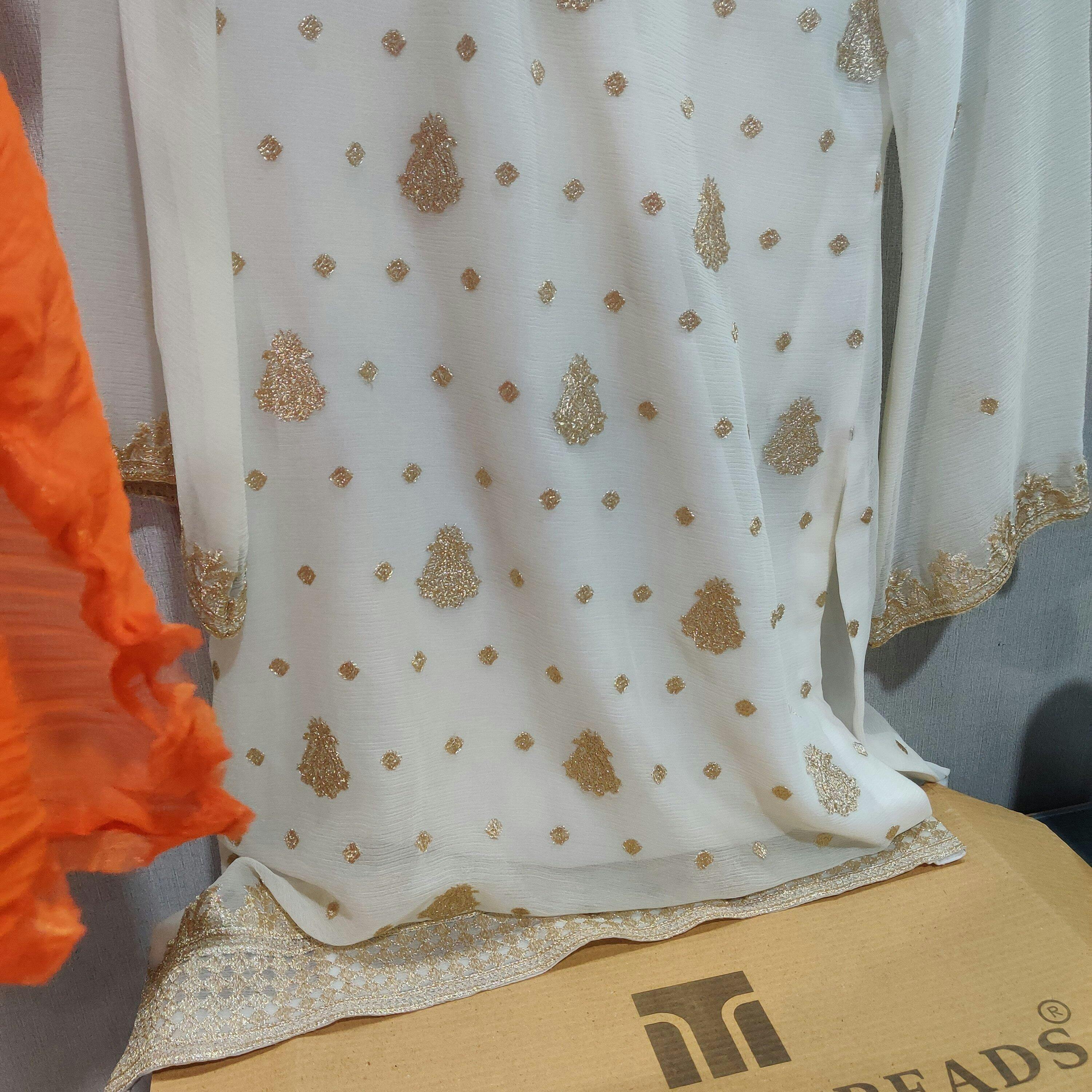 Dupatta: Ash White Chiffon with Gold Embroidered Borders