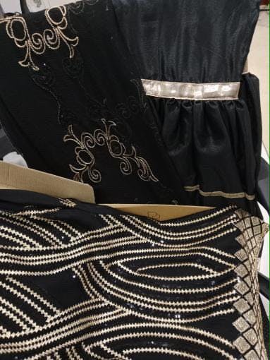 Dupatta: Black Chiffon with Gold Thread Embroidery