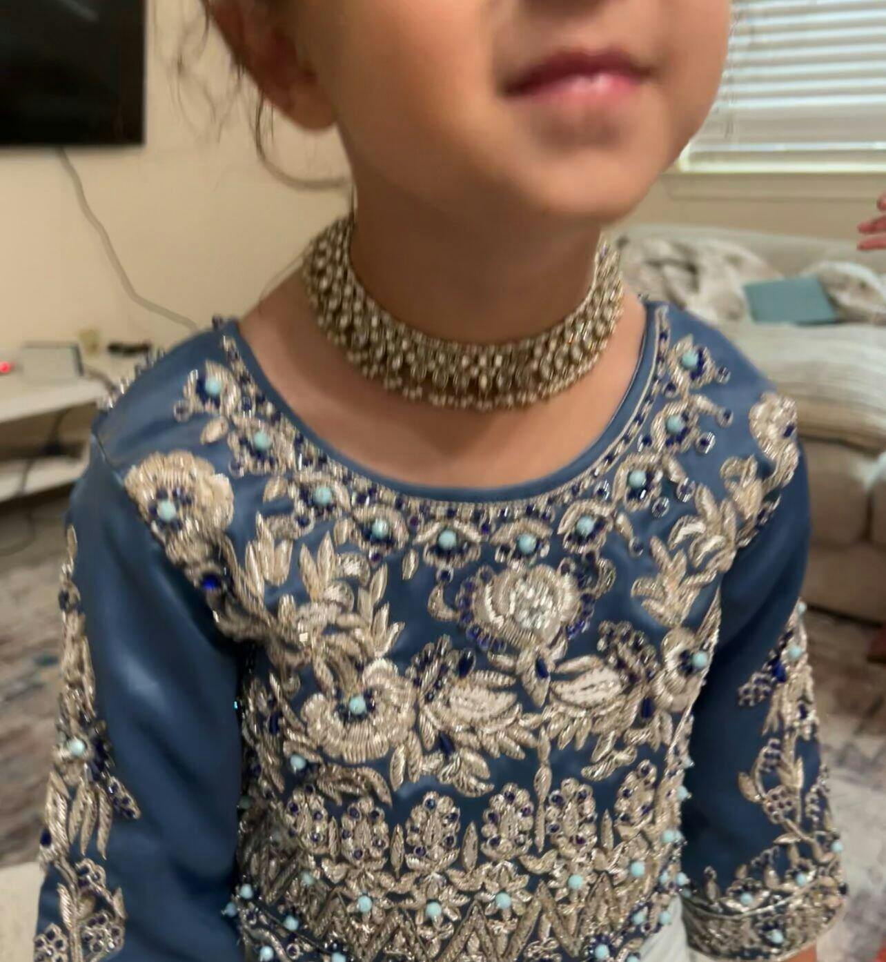 Lehenga: Aqua Colored Crush with Silver Lace Detailing