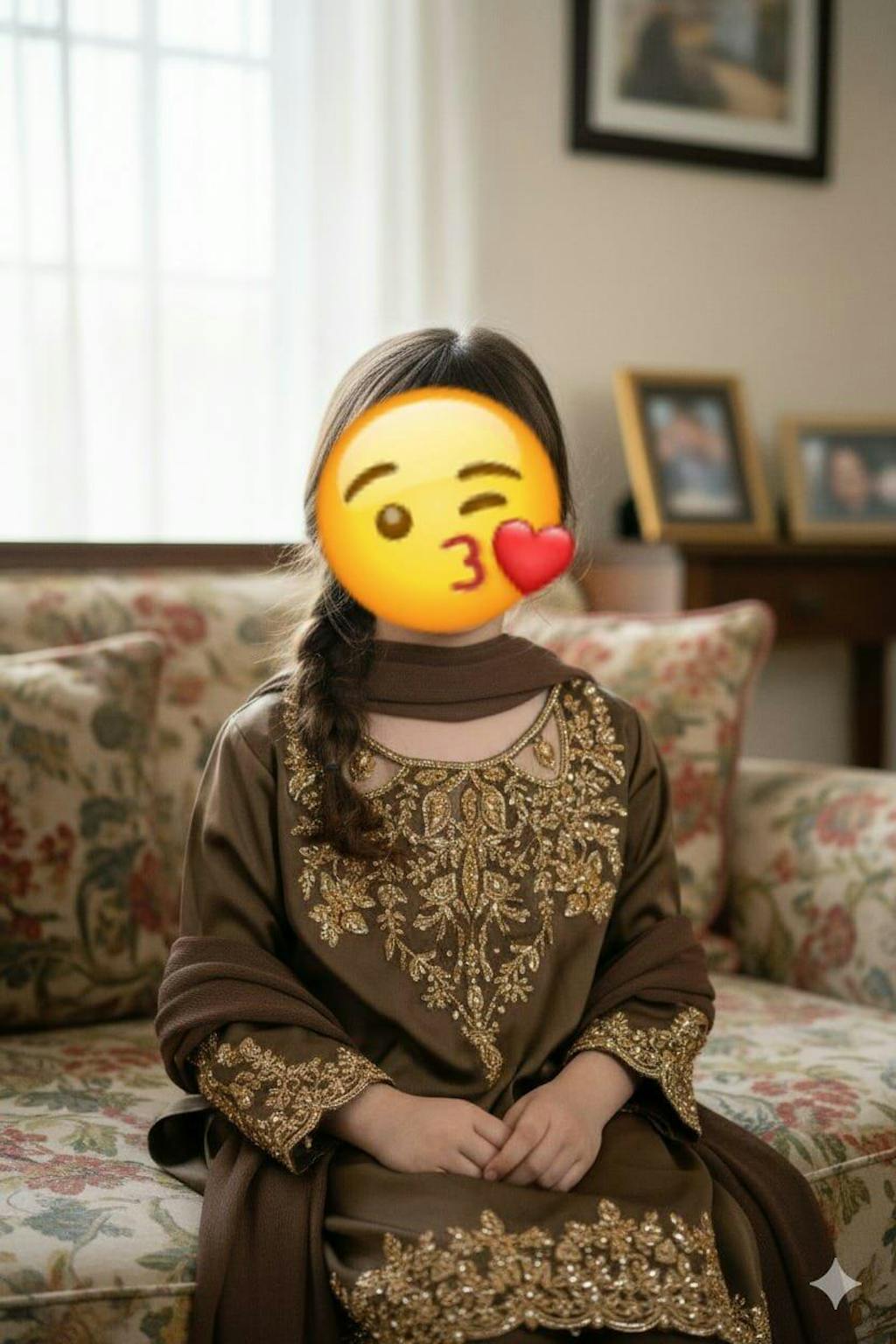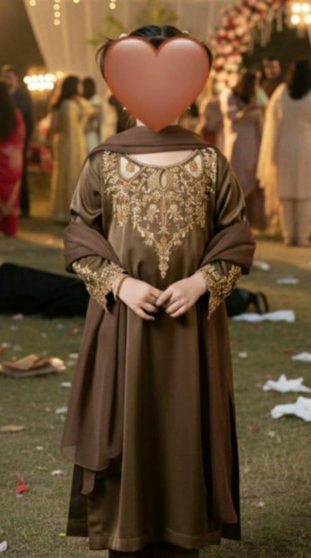 Dupatta: Pure chiffon smoky brown dupatta.