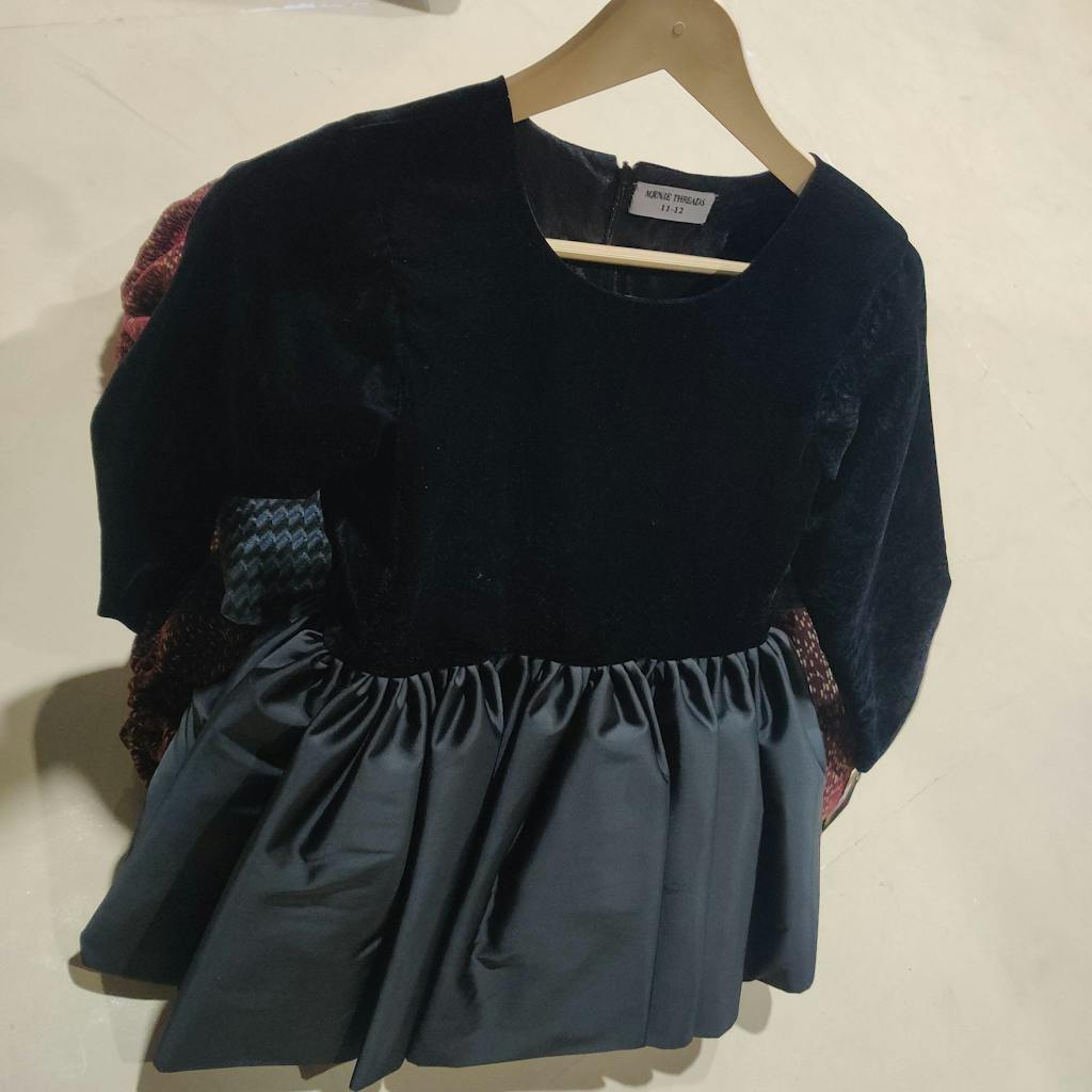 Description: A black velvet top paired with a premium silk mini frock and jet black sequin plazo, creating a stunning and sophisticated look. Perfect for formal events and evening gatherings.