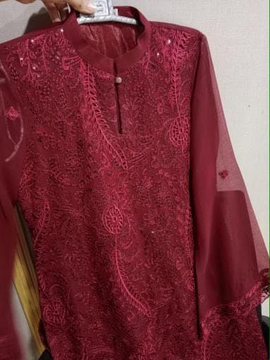 Shirt: Red Chiffon with Red Thread Embroidery