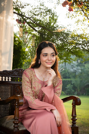 Zivar brings together classic artistry and modern finesse. The delicate gold embellishments over rose pink silk radiate sophistication, making it a perfect pick for festive and formal occasions.